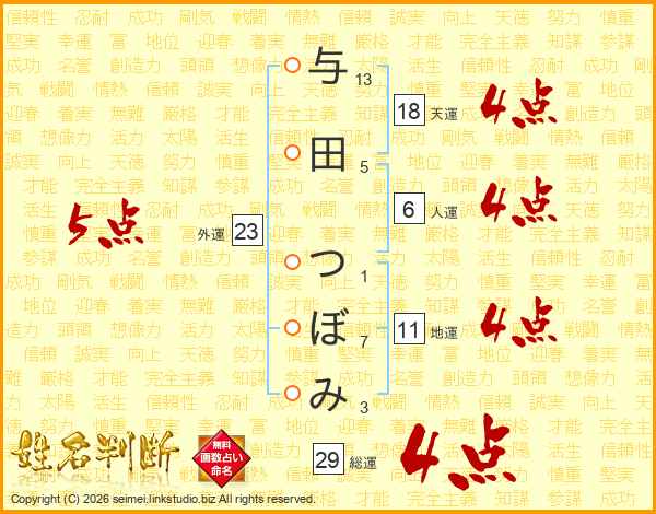 与田つぼみさんの総運は29画の4点!
