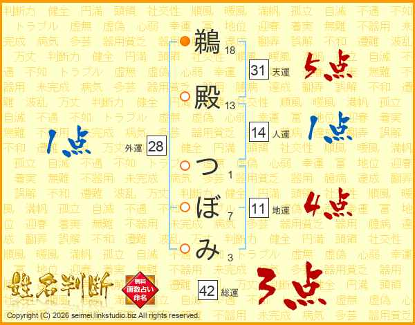 鵜殿つぼみさんの天運は31画の5点!