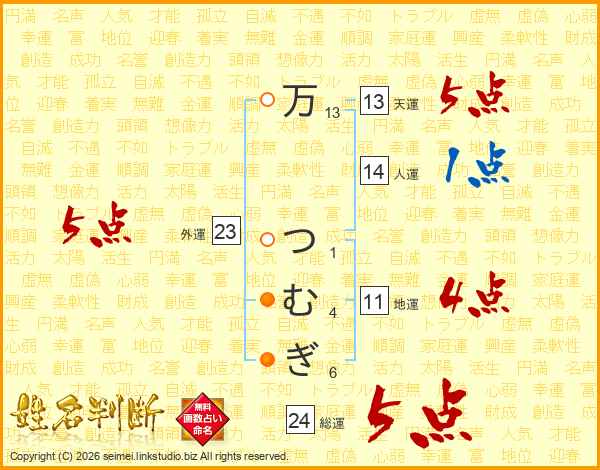 万つむぎさんの総運は24画の5点!