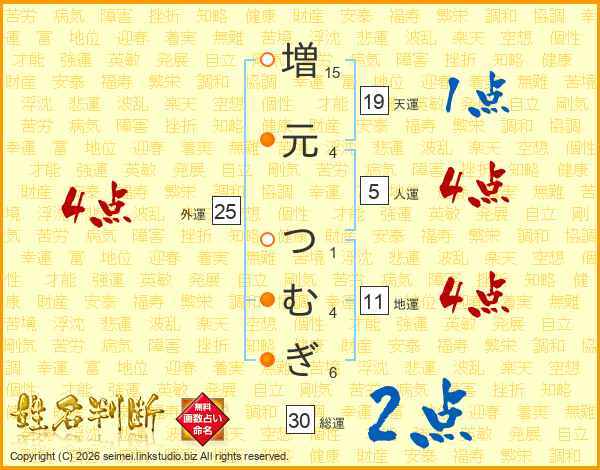 増元つむぎさんの総運は30画の2点!
