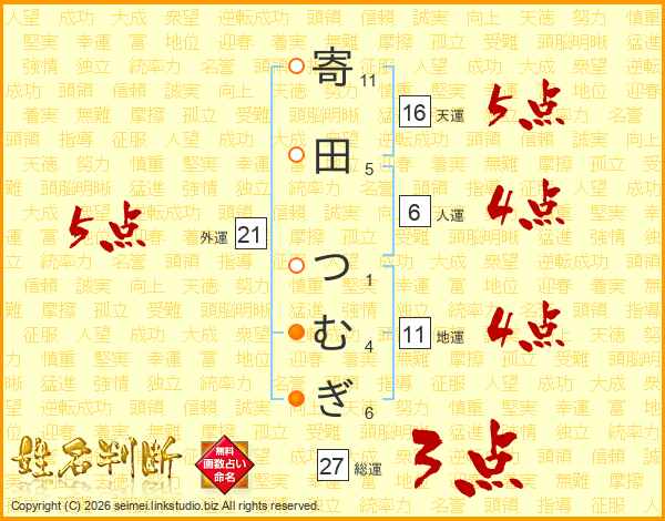 寄田つむぎさんの総運は27画の3点!