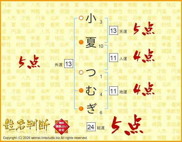 小夏つむぎさんの外運は13画の5点!