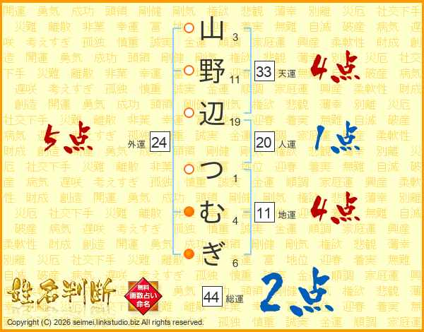 山野辺つむぎさんの総運は44画の2点!