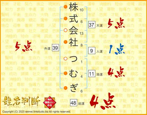 株(10画)式(6画)会(13画)社(8画) つ(1画)む(4画)ぎ(6画)