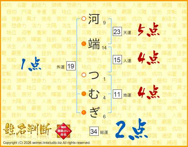 河端つむぎさんの総運は34画の2点!