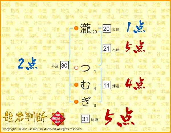 瀧つむぎさんの総運は31画の5点!