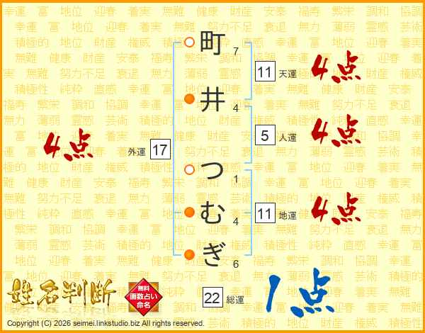 町(7画)井(4画) つ(1画)む(4画)ぎ(6画)