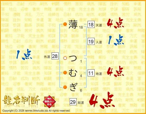 薄つむぎさんの総運は29画の4点!