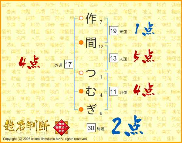作間つむぎさんの天運は19画の1点!