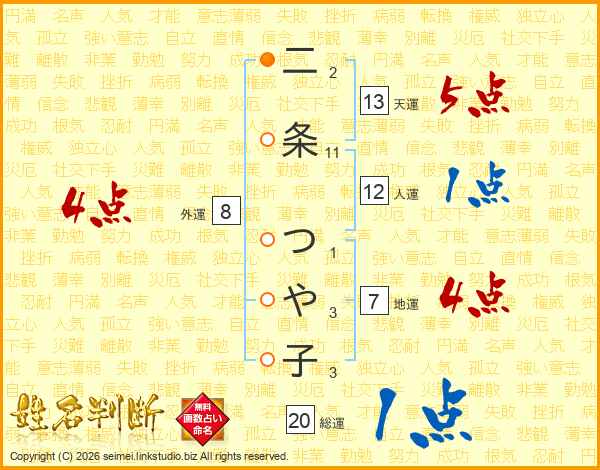 二条つや子さんの天運は13画の5点!