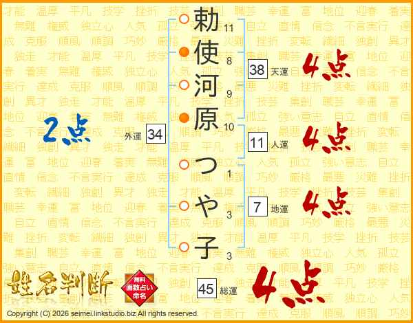 勅使河原つや子さんの総運は45画の4点!