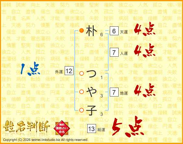 朴つや子さんの総運は13画の5点!
