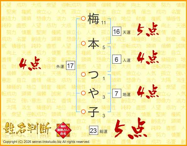 梅本つや子さんの総運は23画の5点!