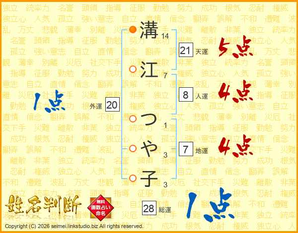 溝江つや子さんの総運は28画の1点!