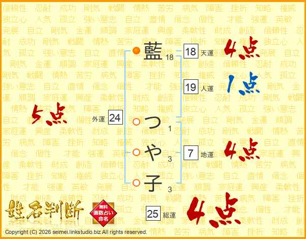 藍つや子さんの総運は25画の4点!