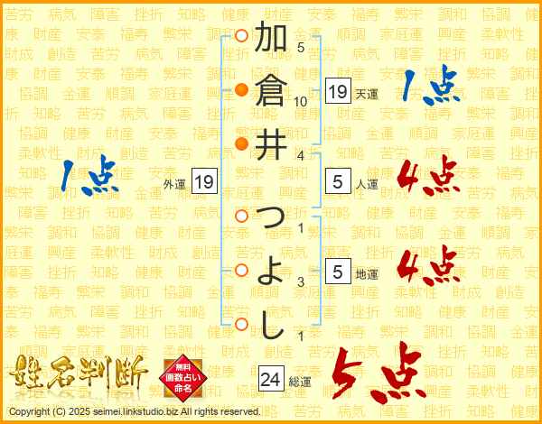 加倉井つよしさんの総運は24画の5点!