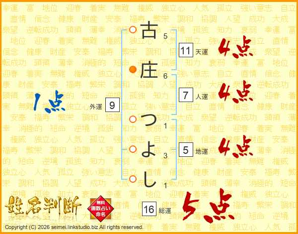 古庄つよしさんの総運は16画の5点!