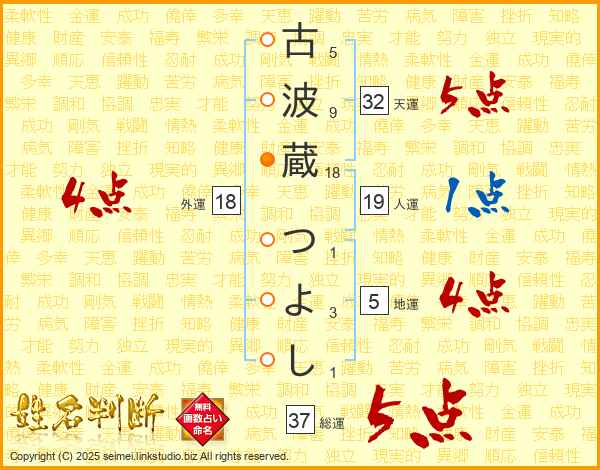 古(5画)波(9画)蔵(18画) つ(1画)よ(3画)し(1画)