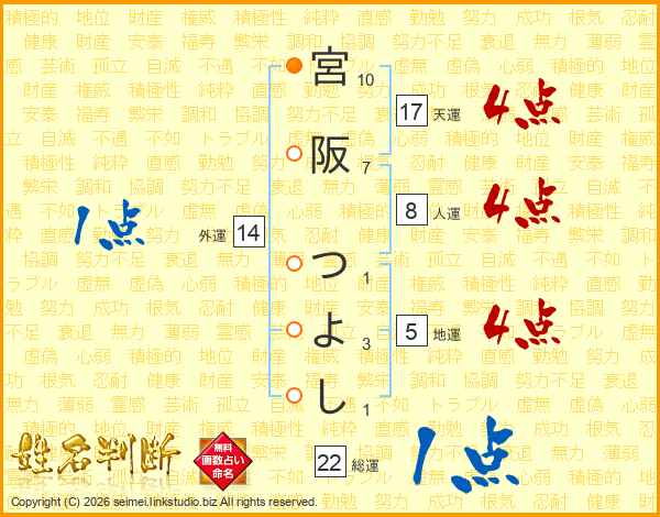 宮(10画)阪(7画) つ(1画)よ(3画)し(1画)