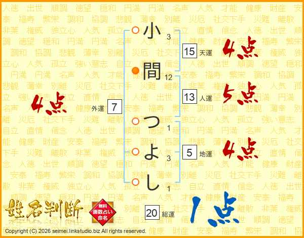 小間つよしさんの天運は15画の4点!