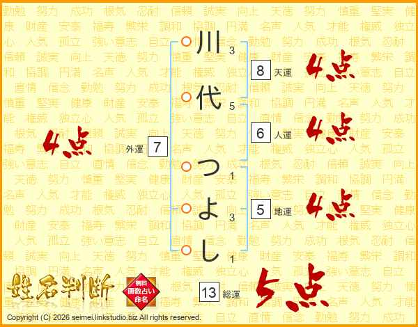 川代つよしさんの総運は13画の5点!