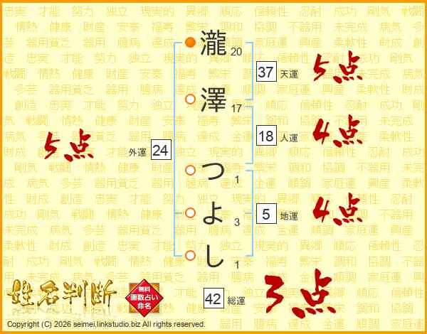 瀧(20画)澤(17画) つ(1画)よ(3画)し(1画)