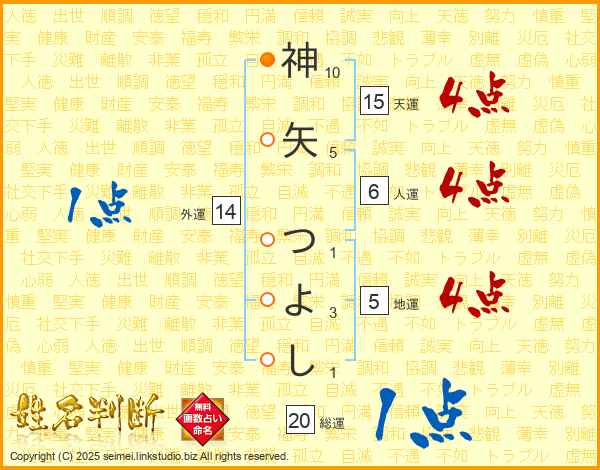 神(10画)矢(5画) つ(1画)よ(3画)し(1画)