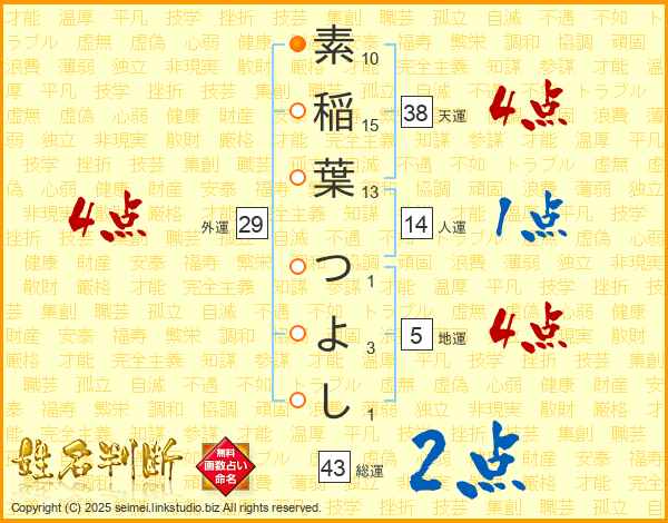 素稲葉つよしさんの総運は43画の2点!