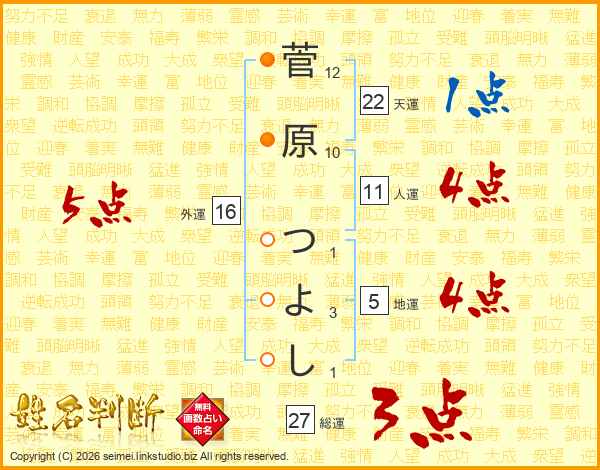 菅原つよしさんの外運は16画の5点!