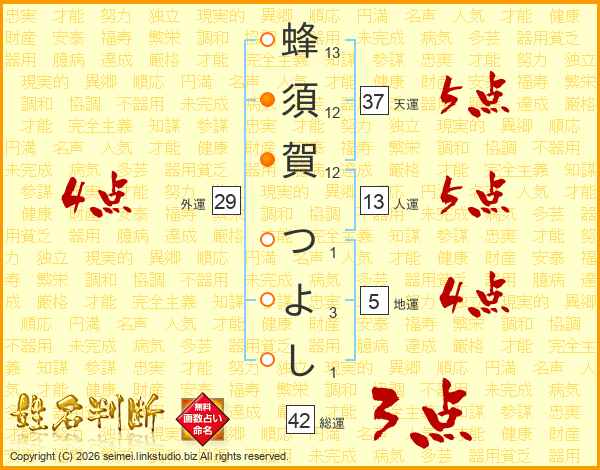 蜂須賀つよしさんの総運は42画の3点!