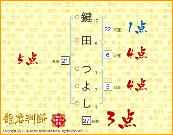 鍵田つよしさんの総運は27画の3点!