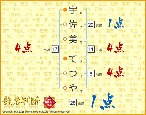 宇佐美てつやさんの総運は28画の1点!