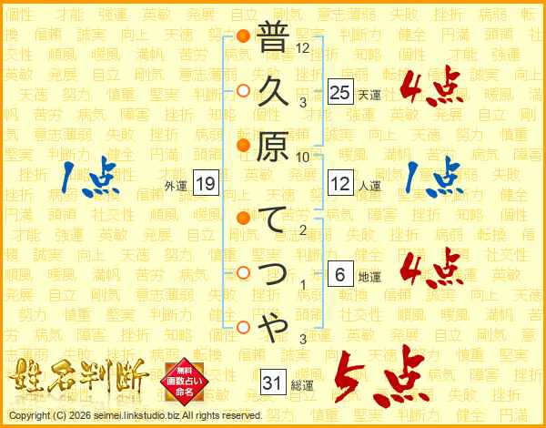 普久原てつやさんの天運は25画の4点!