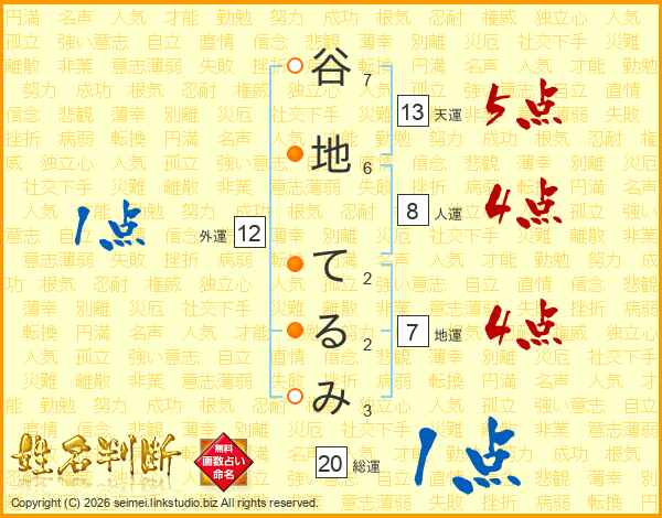 谷地てるみさんの天運は13画の5点!