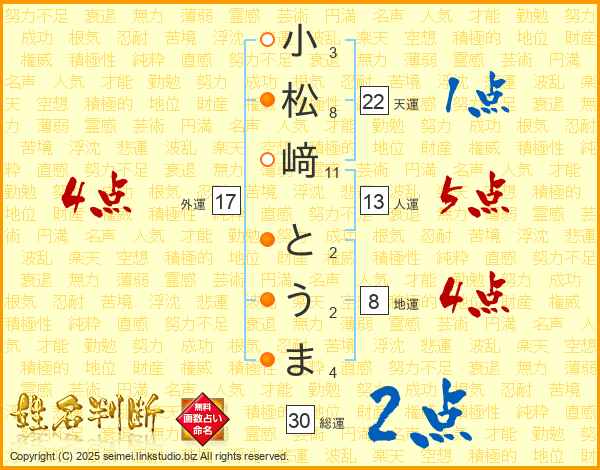 小松﨑とうまさんの総運は30画の2点!
