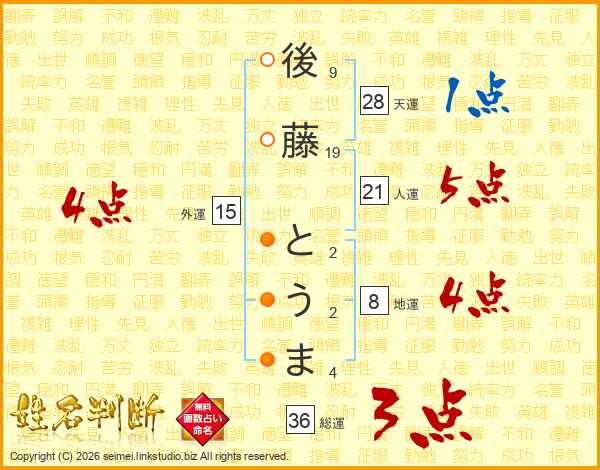 後(9画)藤(19画) と(2画)う(2画)ま(4画)