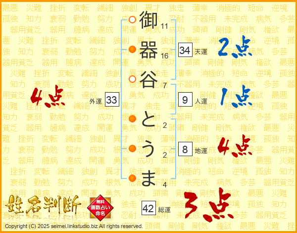御器谷とうまさんの総運は42画の3点!