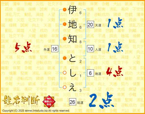 伊地知としえさんの総運は26画の2点!