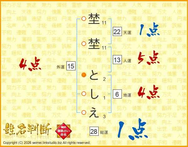 埜埜としえさんの外運は15画の4点!