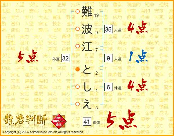 難波江としえさんの総運は41画の5点!