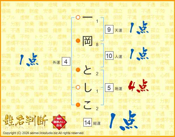 一岡としこさんの総運は14画の1点!