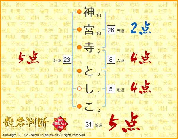神宮寺としこさんの総運は31画の5点!