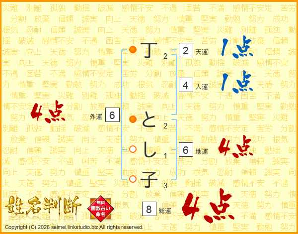 丁とし子さんの総運は8画の4点!