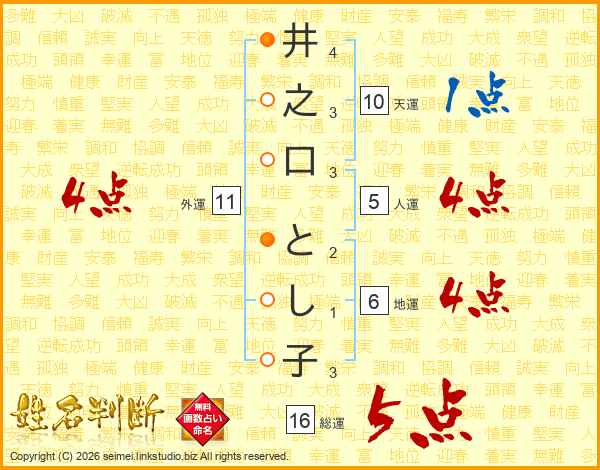 井之口とし子さんの外運は11画の4点!