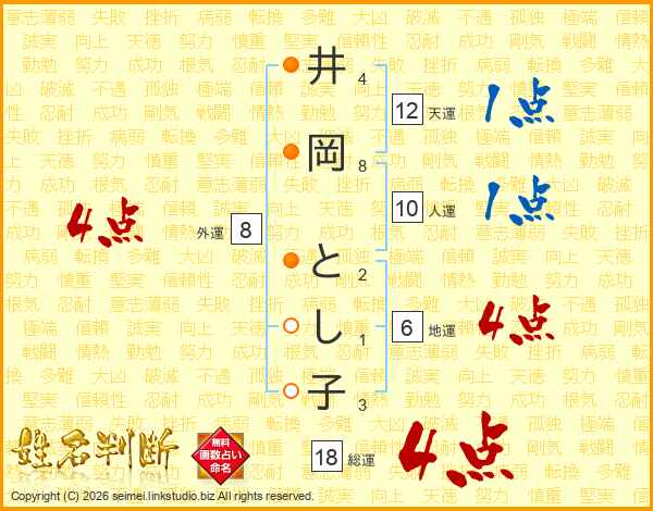 井岡とし子さんの総運は18画の4点!