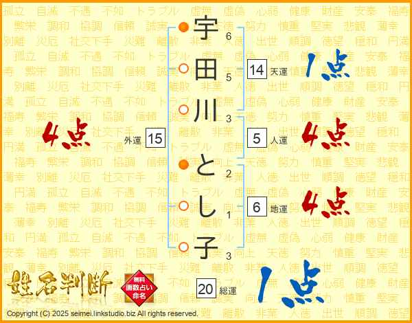 宇田川とし子さんの天運は14画の1点!