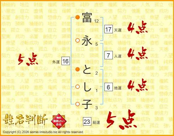 富永とし子さんの天運は17画の4点!