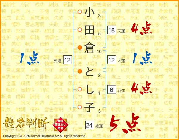 小田倉とし子さんの総運は24画の5点!