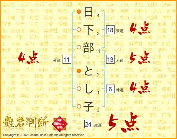 日下部とし子さんの天運は18画の4点!