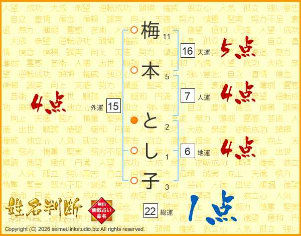 梅本とし子さんの総運は22画の1点!
